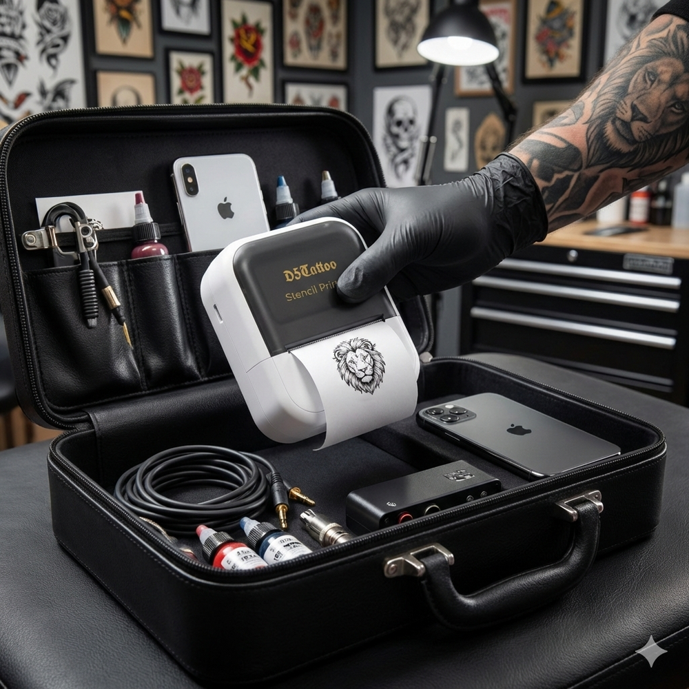 The D5 Mini Tattoo Stencil Printer is perfect for tattoo artists and beginners. It comes with 20pcs transfer paper, making it versatile for various tattoo projects. This tattoo printer machine is compatible with both phone and PC, offering flexibility in use. Ideal for those starting in tattooing, it simplifies the process with its user-friendly design.